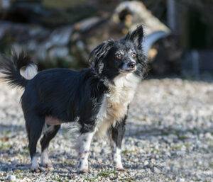 Leni ist am 15. Januar 2018 bei uns eingezogen. Zuvor lebte sie in einem Auffanglager in Polen ohne Schutz vor der eisigen Kälte. Sie genießt es richtig, bei uns ein warmes Plätzchen gefunden zu haben. Offensichtlich hat Leni bei Menschen gelebt, bevor sie ins Lager kam, denn sie ist sehr menschenbezogen und folgt uns auf Schritt und Tritt. Sie liebt es gestreichelt zu werden, will aber die Aufmerksamkeit des Menschen gern für sich alleine. Wenn sich Kaspar, der mit ihr in einem Zimmer wohnt, während des Streichelns nähert, knurrt sie ihn weg und schnappt auch in die Luft ab, beißt allerdings nicht. Deshalb wäre sie gut auf einem Einzelplatz untergebracht oder in einem Mehrhundehaushalt mit Erfahrung der Halter, wie man ein solches Verhalten in Grenzen hält.