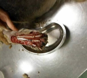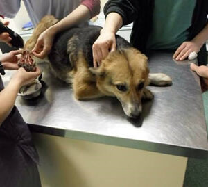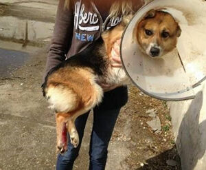 Linda ist am 22. April 2015 bei uns eingezogen. Sie stammt aus Rumänien, wo sie mit einer schlimmen Verletzung an der Pfote und völlig dehydriert im Straßengraben gefunden wurde. Die Pfote war bis auf die Knochen aufgerissen, Linda muss unerträgliche Schmerzen gehabt haben. Aufgrund ihres Zustandes lag sie vermutlich schon länger dort und wartete auf den Tod. Tierschützer haben sie umgehend in eine Klinik gebracht, wo man versuchte die Pfote zu retten. Linda erduldete alle Behandlungen und blieb trotz erheblicher Schmerzen immer brav. Wie man auf den Bildern sieht, brauchte sie noch nicht einmal einen Maulkorb bei den Behandlungen. Linda wird Ihre Pfote sicherlich noch lange schonen, aber es besteht Hoffnung, dass sie wieder völlig normal laufen wird.