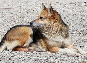 Linda ist inzwischen nicht mehr die Jüngste, die Spaziergänge werden kürzer und sie genießt die Ruhe auf ihrem Fell auf der Terrasse.