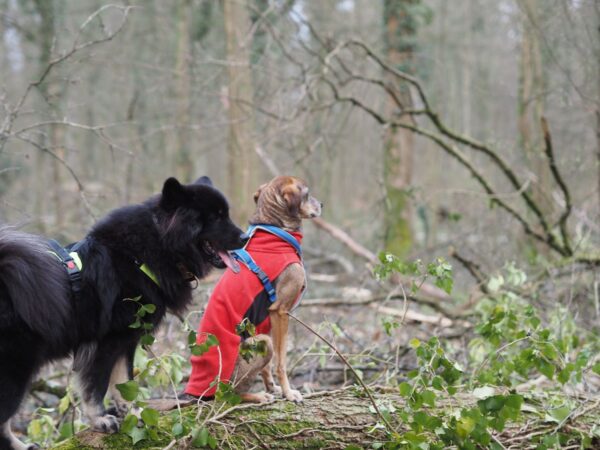 Mittlerweile waren wir schon einige Male bei der Physiotherapie. Luckys Begeisterung für das Unterwasserlaufband hielt sich am Anfang sehr in Grenzen, aber beim letzten Mal lief er schon richtig routiniert. Seine Oberschenkelmuskulatur ist ziemlich verkürzt, was zur Patellaluxation führt. So wird er massiert und gedehnt und wir üben täglich auf dem Wackelbrett. Es wird bestimmt noch deutlich besser, braucht aber einfach Zeit. Damit die Muskulatur im Moment nicht zu sehr auskühlt, hat uns die Tierklinik und die Physiotherapie zu einem Mantel geraten, den er bei nasskalterm Wetter tragen soll. Ich war skeptisch, aber er mag ihn wirklich und es tut ihm sichtlich gut.
