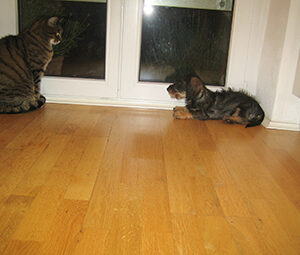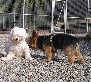 Mit Hunden versteht sie sich gut, größere Hunde machen ihr anfangs zwar etwas Angst, wenn sie aber merkt, dass diese friedlich sind, gewinnt sie an Sicherheit.
