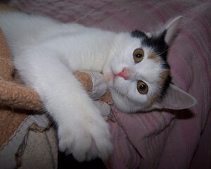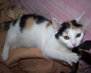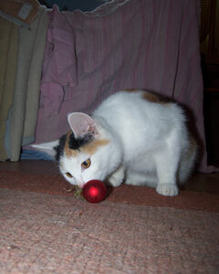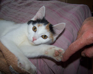 Marie ist am 01. Februar 2012 bei uns eingezogen. Wir hatten einen Anruf aus dem Dorf bekommen, dass eine junge Katze bei eisiger Kälte (-18°C!) klagend um die Häuser zieht und offensichtlich kein Zuhause hat. Natürlich haben wir die Kleine sofort abgeholt und bei uns im Warmen untergebracht.