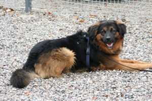 Maxl, Schäferhund-Berner Sennen-Mischling, männlich, kastriert, geb. Januar 2005. Er hat bei seinen früheren Haltern recht zurückgezogen gelebt, weshalb er auf eine sehr belebte Umwelt (z.B. Innenstadtbereich) nervös und ängstlich reagiert. Mit Artgenossen ist er sehr gut verträglich, bei Menschen braucht er eine Weile, um aufzutauen. Dann ist er jedoch anhänglich und sehr verschmust. Maxl spielt auch gern und wäre am liebsten immer mit einem ihm vertrauten Menschen zusammen. Er kann aber auch problemlos allein zu Hause bleiben.