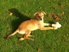 Am 09.10.08 konnte Michel in sein neues Zuhause ziehen. Wir freuen uns sehr für Ihn. Die beiden Bilder zeigen einen gelungenen Start und einen zufriedenen Welpen in seiner neuen kleinen Hundewelt.