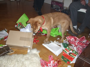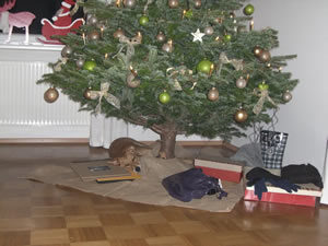 Anbei zwei wunderbare Bilder von Weihnachten! Wir hatten alle einen riesen Spaß – Michel hatte allerdings den meisten! Und nach all der „Anstrengung“ des Geschenkpapier-Zerrupfens, musste er unter dem Baum schlafen! Zu süß! Er macht uns soooooo viel Freude! Wir hätten uns keinen besseren Mitbewohner vorstellen können!