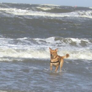 Im Anhang seht Ihr Bilder von mir am Meer… Das war echt super! Nur ist das Wasser im Meer so komisch salzig… Ich bin ganz schön groß und „männlich“ geworden, was?! Aber noch genauso schön, wie als Welpe.