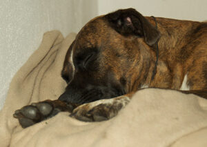 Auch im Schlaf kann Rosa sehr gefährlich aussehen, nicht nur beim Toben mit ihren Kumpels!