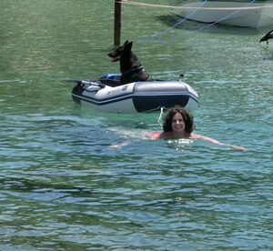 anbei möchten wir mit Euch die Freude teilen, die wir mit Santo bei unserem ersten gemeinsamen Urlaub auf unserem Boot erlebt haben. Santo ist ein richtiger Seehund, obwohl ihm das Salzwasser fremd war. Erst wollte er es immer trinken, hat aber schnell gemerkt, dass das überhaupt nicht schmeckt. Obwohl er so eine Wasserratte zu Hause ist, wollte er im Salzwasser erstmal keine Freundschaft schließen. Da hat er es sich doch lieber im Schlauchboot gemütlich gemacht und sich von mir an Land bringen lassen. Einfach zu süß, wie schnell er kapiert hat, dass er brav sitzen muss. Im flachen Wasser hat er dann zum Plantschen gar nicht mehr aufgehört. Bootfahren liebt er sehr und es gab jede Menge neues zu entdecken. Das ist nun auch sein Zuhause geworden, das er streng bewacht.