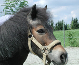 Es dauerte eine ganze Weile, ehe sie Vertrauen zu uns gefaßt hat. In den ersten Wochen stand sie fast immer nur für sich allein, mit einem so traurigen Blick, dass es einem das Herz brechen konnte. Doch nach einiger Zeit taute sie auf und hat seitdem eine gute Bindung zu uns, zu Isabella und vor allem zu Lanzelot und Siddhartha aufgebaut. Sie findet es toll, wenn Ulli ihr im Sommer Zöpfe flechtet, damit sie unter ihrer dichten Mähne nicht so schwitzt. Sie geht gern spazieren und liebt es, am Mähnenkamm gekrault und am Hintern geschubbert zu werden. Sie ist unglaublich sensibel und sanft.