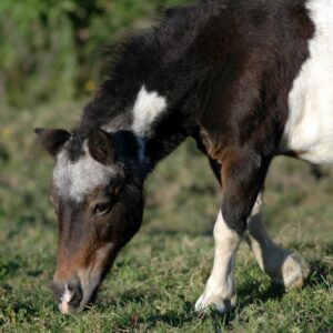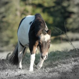 Sternchen haben wir von einem Händler freigekauft. Sie hat chronisches Asthma, leichte Hufrehe und allerlei Allergien. Trotzdem sollte sie auf einen Reiterhof verkauft werden, um täglich viele Stunden mit Kindern auf dem Rücken im Kreis zu marschieren – der Händler hatte da keine Bedenken…