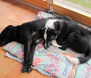 es hätte nicht besser gehen können bisher, die beiden vertragen sich von Anfang an super gut. Lisi (Sweety) hat das Terrain anfänglich natürlich sehr aufgeregt erobert, ist aber heute schon sichtlich gelassener und hat auch die Nacht absolut ruhig zugebracht. Ein toller Hund, so weit wir sie bisher kennengelernt haben – bei der Vorgeschichte! Und dem Pauli tut es auch sehr gut, nicht mehr nur der Kronprinz zu sein. Wir sind ganz zuversichtlich, dass wir mit den beiden Viecherln ganz viel Freude haben werden – und sie hoffentlich auch mit uns.