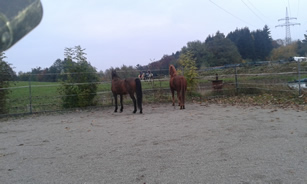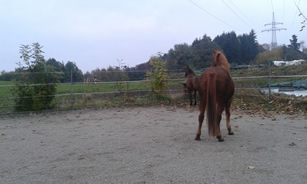 Mit Sternchen und Isabella lief Michi am Morgen die Waldrunde. Zum Traben hatten beide keine Lust, aber im Schritt gingen sie brav mit. Wallace wurde anschließend noch von Michi geputzt. Gowinda war währenddessen auf der Koppel, weil er von da aus einen besseren Blick auf seine Lieblingsstute vom Nachbarstall hat. ![]()