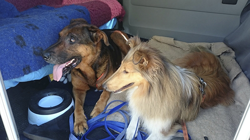 Doris und Bianca haben Bella und Armani zu einem Ausflug zum Hartsee mitgenommen. Während der Autofahrt dorthin waren beide Hunde noch etwas angespannt, aber während des Spaziergangs entspannten sie sich immer mehr und auf dem Rückweg ist Armani sogar selbstständig ins Auto gesprungen und auf der Rückfahrt haben beide ausgiebig geschlafen. ![]()