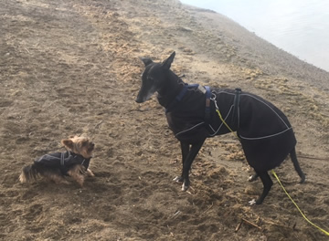 Laura machte einen Ausflug mit unserem Pensionsgast Jimmy, der sich darüber total freute. Zwar ist er bereits recht häufig bei uns gewesen und somit gut eingewöhnt, aber mit zunehmendem Alter und je länger der Zeitraum wird, den er bei uns ist, beginnt er dann doch ab und an zu jammern. Ein Spaziergang zur Abwechslung war daher genau das Richtige für ihn. ![]()