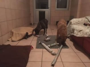 Spazieren waren Eddie, Bella, Armani und Carlos. Sie und alle anderen Hunden verbrachten auch viel Zeit im Hof und in den Ausläufen. ![]()