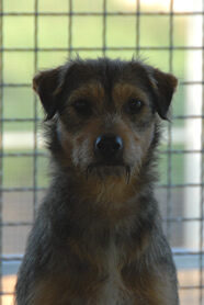 Tina irrte mehrere Monate lang durch Felder und Wälder bei Glonn. Niemand wußte, woher sie kam, welche Vorgeschichte sie hat. Schließlich gelang es einer befreundeten Trainerin, sie nach wochenlangem Anfüttern einzufangen und zu uns zu bringen. Bei uns zeigt sich Tina super-verträglich mit allen Hunden und Menschen, wobei sie Zweibeinern gegenüber noch recht schüchtern ist. Sie taut aber täglich mehr auf und hat sie einmal Vertrauen gefaßt, will sie ganz viel kuscheln.